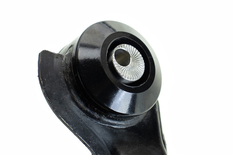 PFF1-1002G is a replacement bush that in our purple Road Series material is 23% stiffer than the original rubber bush and gives a fixed 5mm offset to provide +/- 0.5° caster offset for improved steering feel. Additional caster will also create additional negative camber on turn giving improved tyre contact with the road under heavy cornering. For a non-adjustable version of this bush please use PFF1-1002.