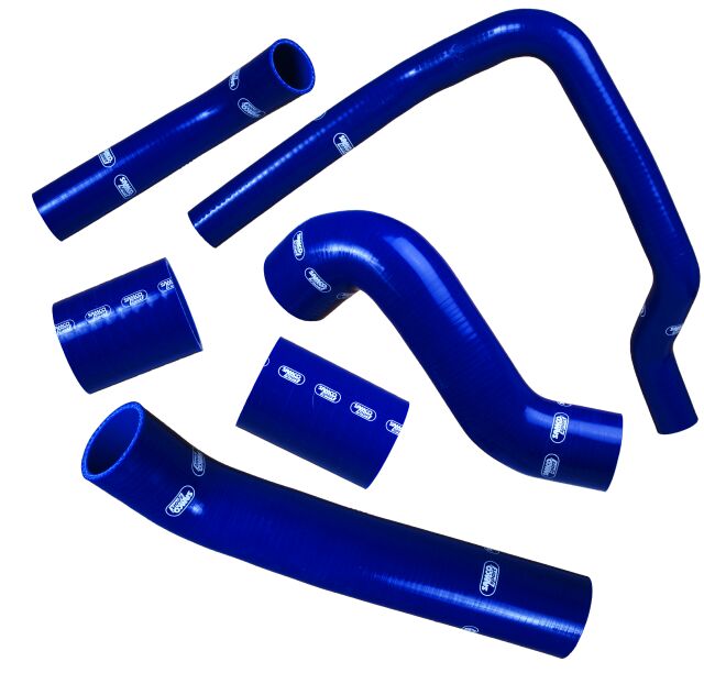 Turbo hoses kit which replaces the all OE boost hoses. Suitable for Mitsubishi Lancer Evo 10. Presure and temperature resistant. Improoves air flow. Available in blue color.